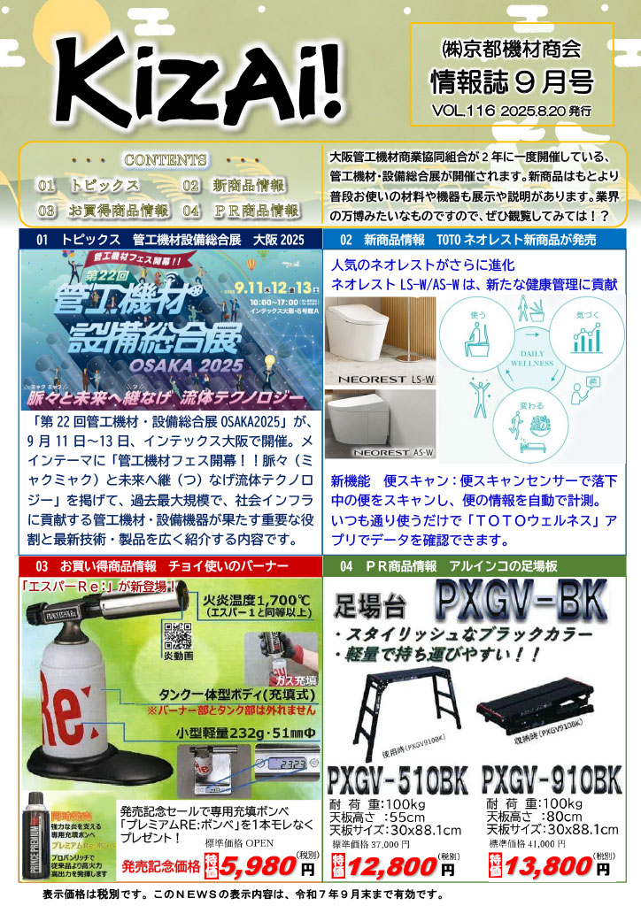 トピックス128 京都機材ニュース2025年9月号を発刊しました(2025.8.20)