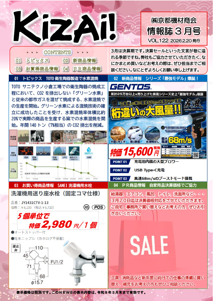 トピックス133  京都機材ニュース2026年3月号を発刊しました(2026.2.20)