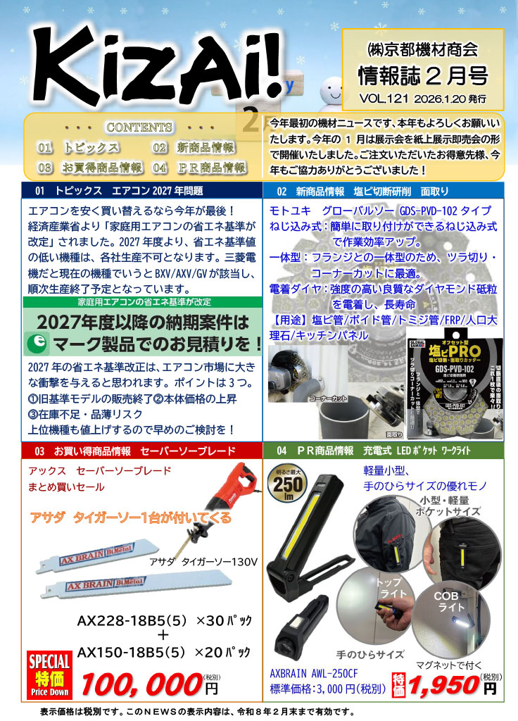 トピックス132 京都機材ニュース2026年2月号を発刊しました(2026.1.20)