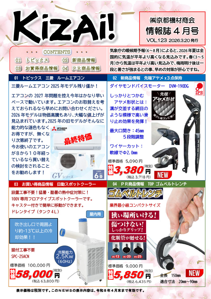 トピックス134 京都機材ニュース2026年4月号を発刊しました(2026.3.20)